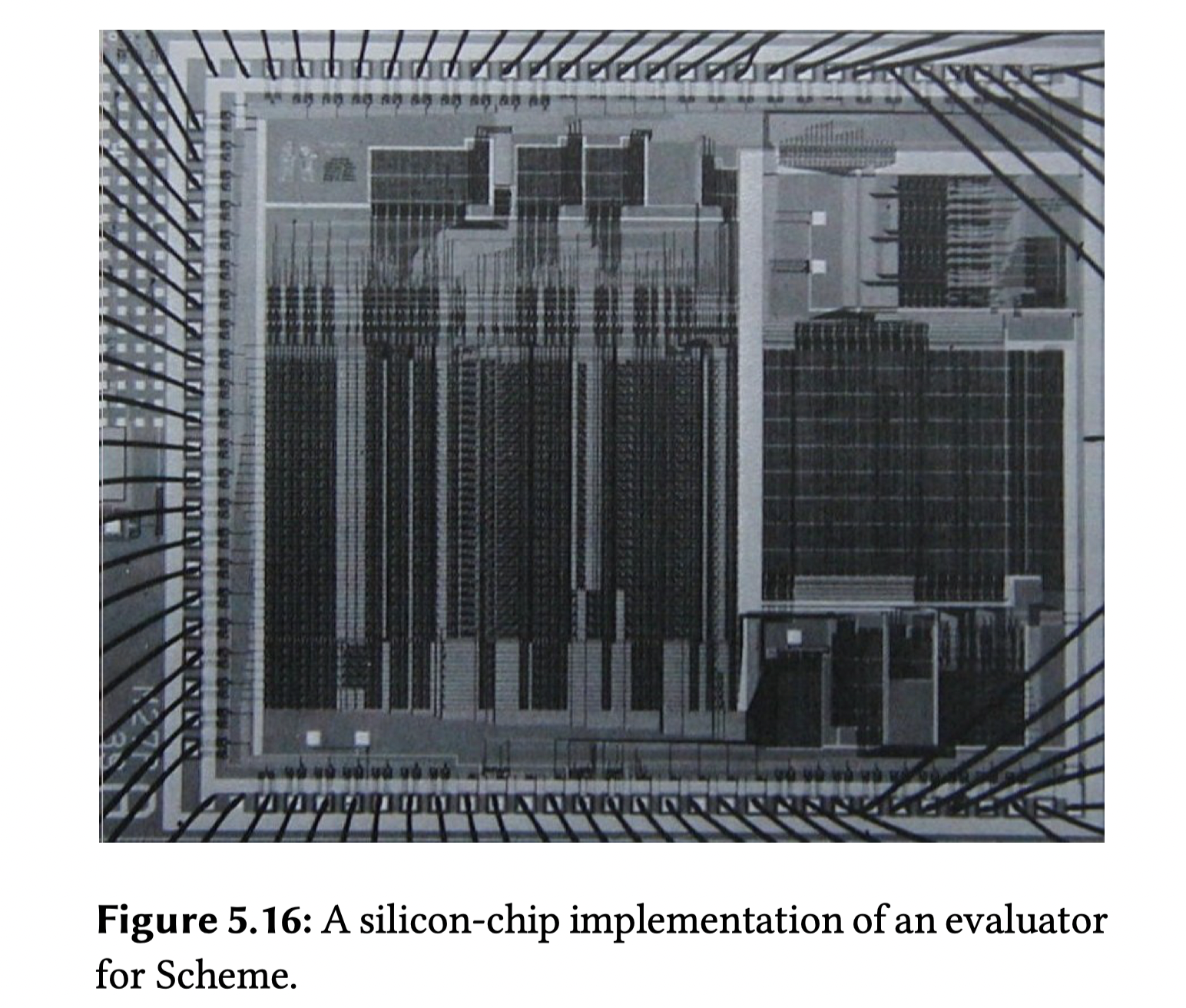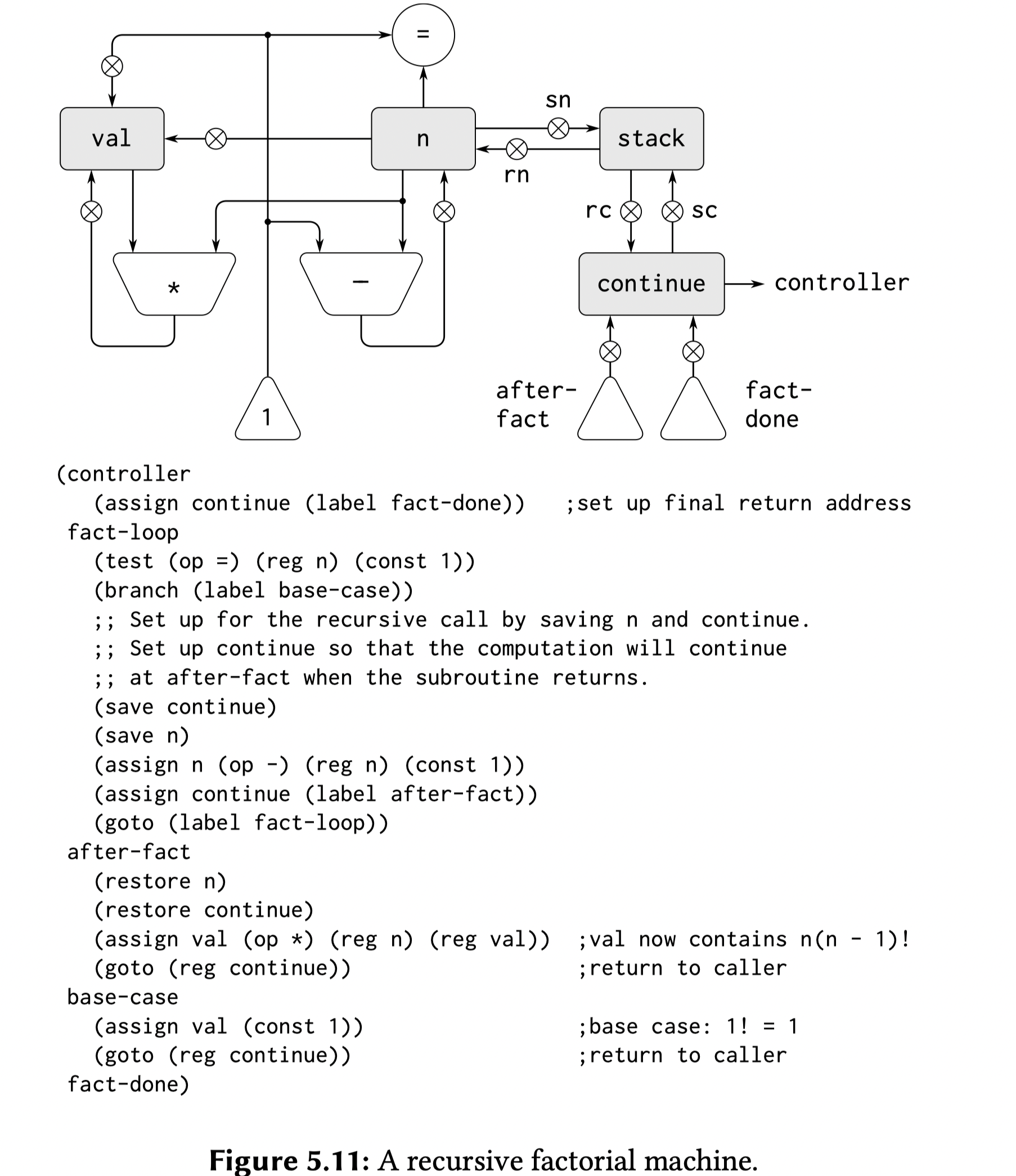 显示控制的求值器(The Explicit-Control Evaluator):经过上面的寄存器形式的代码编译,最终可以实现一个可以执行 scheme 语言的计算器,这个计算的逻辑放到硬件中,就变成了这个芯片。