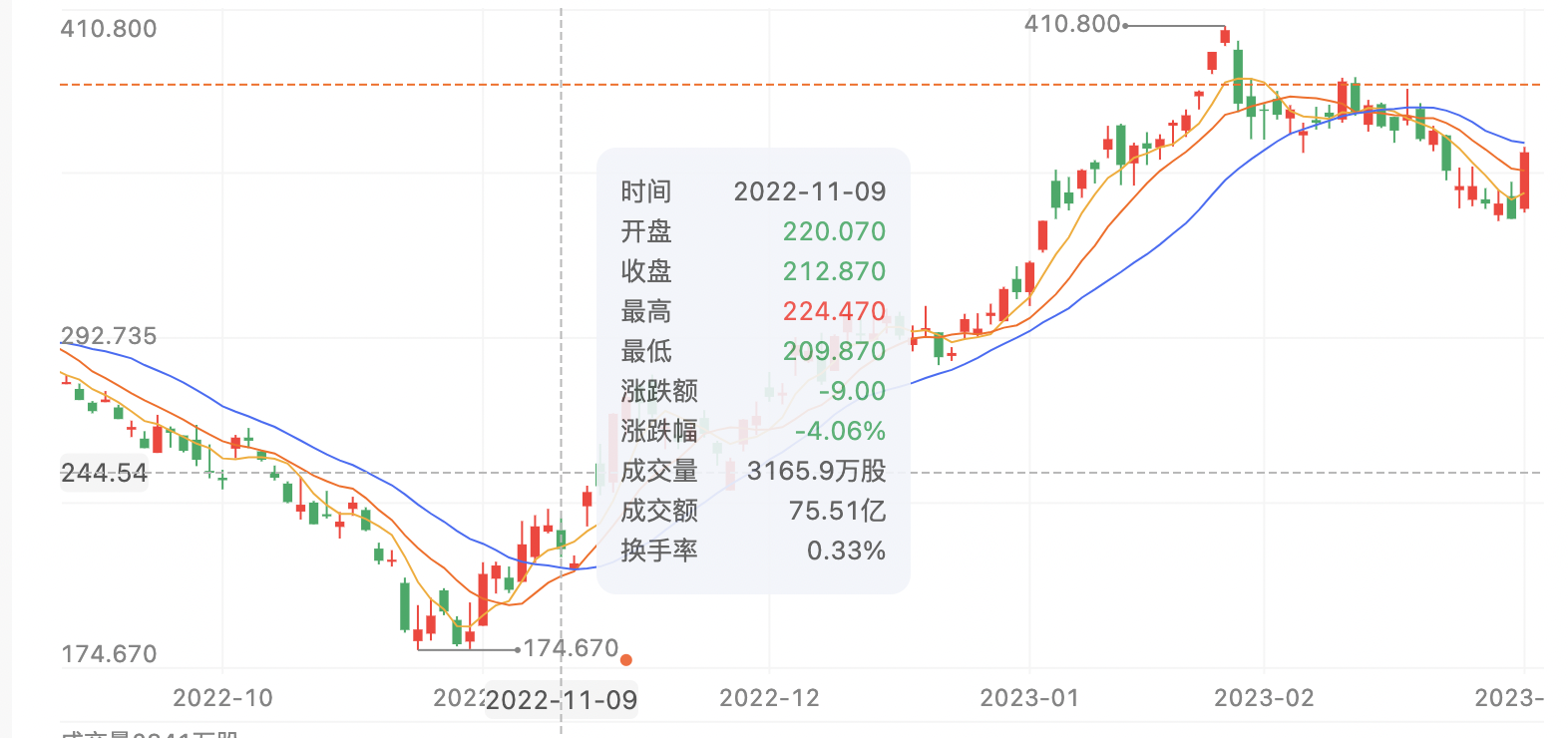 腾讯在22年时候的K线